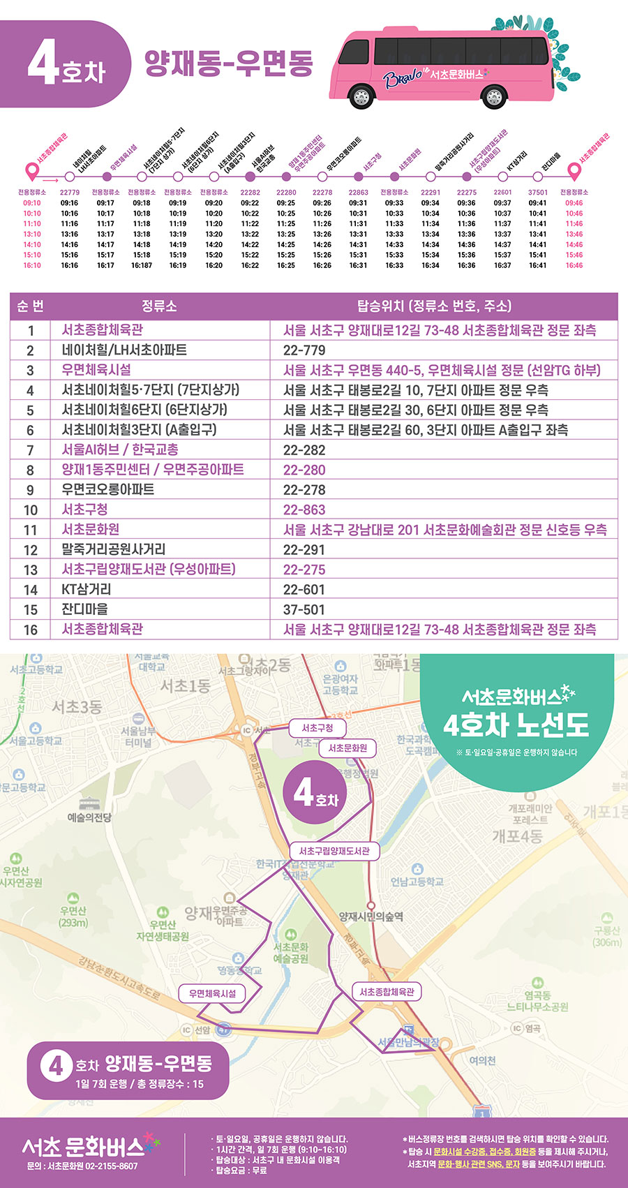 HOME > 서초문화버스 > 4호차(양재·우면동)